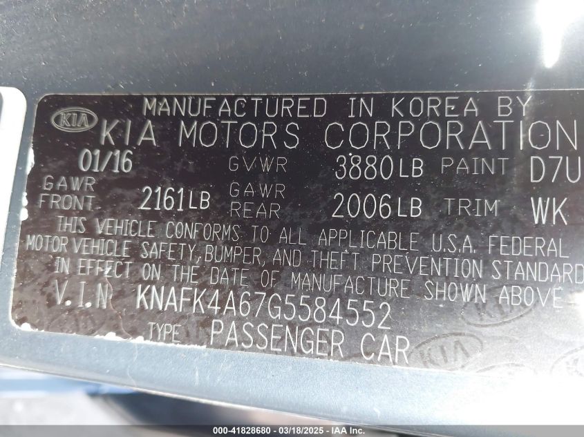 2016 KIA FORTE 2016 року Бензин, 1.8, Передний привод, vin - KNAFK4A67G5****** из США