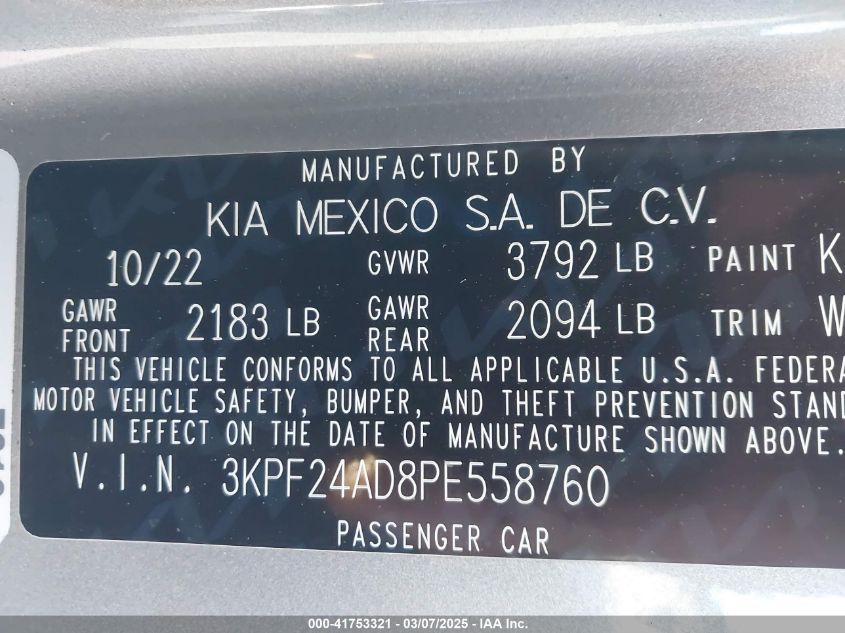 2023 KIA FORTE 2023 року Бензин, 2.0, Передний привод, vin - 3KPF24AD8PE****** из США