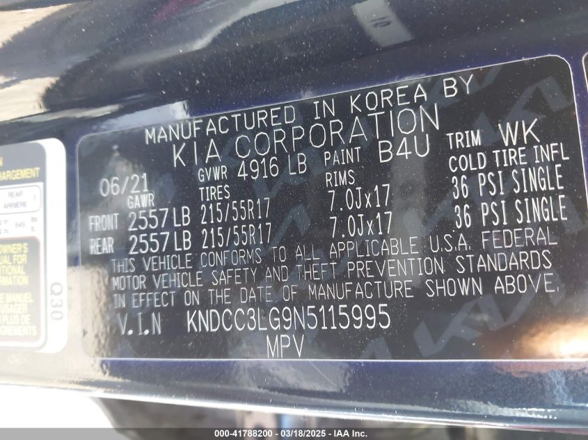Цвет СинийПривод Передний приводVIN KNDCC3LG9N5******Состояние НеизвестноПовреждения Правая сторона AutoRIA