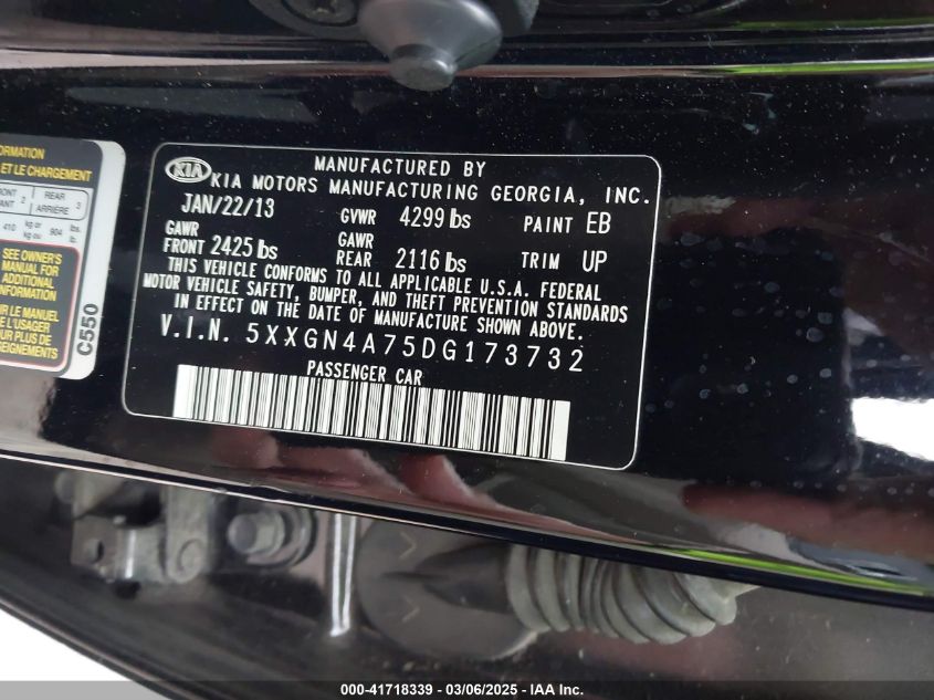 2013 KIA OPTIMA 2013 року Бензин, 2.4, Передний привод, vin - 5XXGN4A75DG****** из США