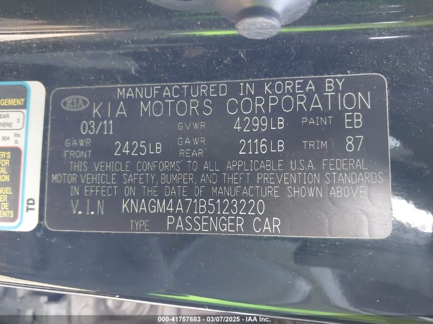 2011 KIA OPTIMA 2011 року Бензин, 2.4, Передний привод, vin - KNAGM4A71B5****** из США