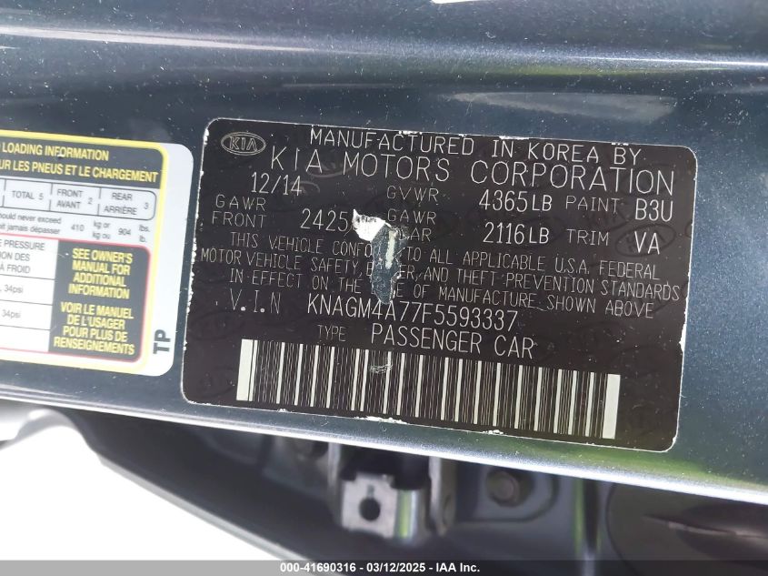 2015 KIA OPTIMA 2015 року Бензин, 2.4, Передний привод, vin - KNAGM4A77F5****** из США