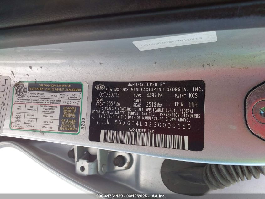 Цвет СерыйЦилиндры 4Привод Передний приводVIN 5XXGT4L32GG******Состояние НеизвестноПовреждения Передняя правая AutoRIA
