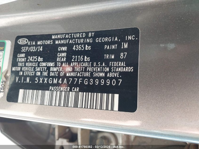 Цвет СерыйЦилиндры 4Привод Передний приводVIN 5XXGM4A77FG******Состояние НеизвестноПовреждения Передняя или задняя AutoRIA