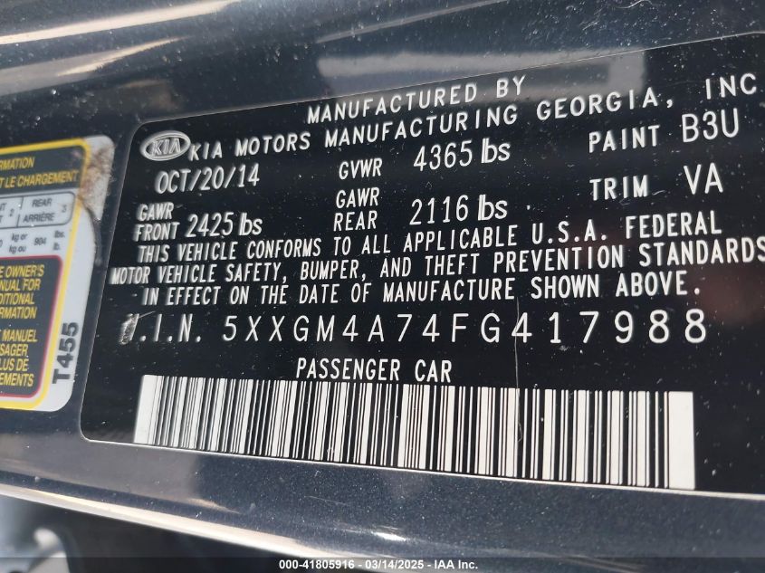 2015 KIA OPTIMA 2015 року Бензин, 2.4, Передний привод, vin - 5XXGM4A74FG****** из США