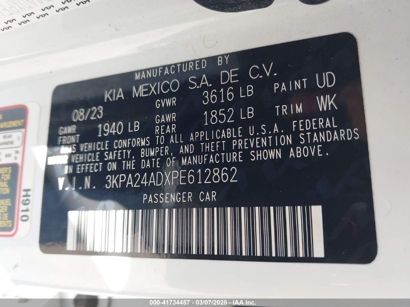 2023 KIA RIO 2023 року Бензин, 1.6, Передний привод, vin - 3KPA24ADXPE****** из США