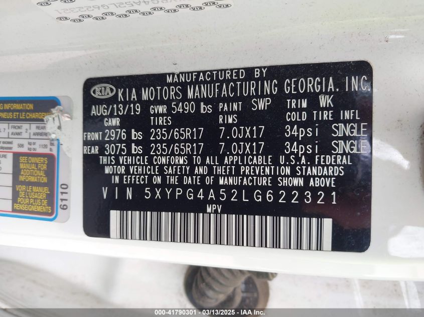 Цвет БелыйЦилиндры 6Привод Передний приводVIN 5XYPG4A52LG******Состояние НеизвестноПовреждения Передняя или задняя AutoRIA