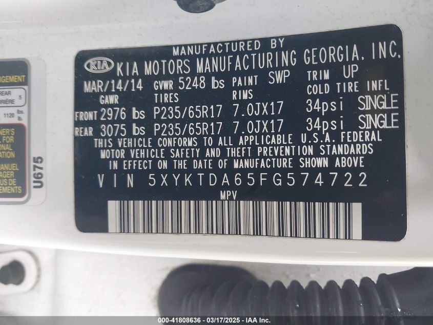2015 KIA SORENTO 2015 року Бензин, 2.4, Полный привод, vin - 5XYKTDA65FG****** из США