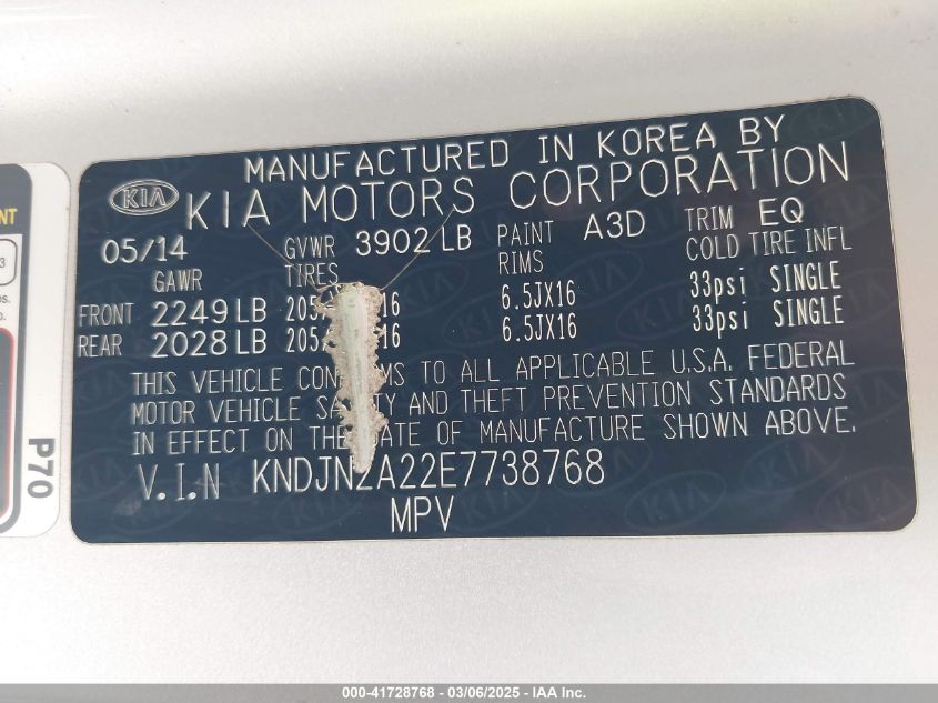 Цвет СеребряныйЦилиндры 4Привод Передний приводVIN KNDJN2A22E7******Состояние НеизвестноПовреждения Правая сторона AutoRIA