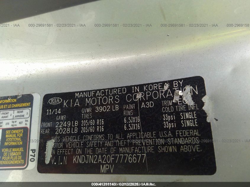 2015 KIA SOUL 2015 року Бензин, 1.6, Передний привод, vin - KNDJN2A20F7****** из США