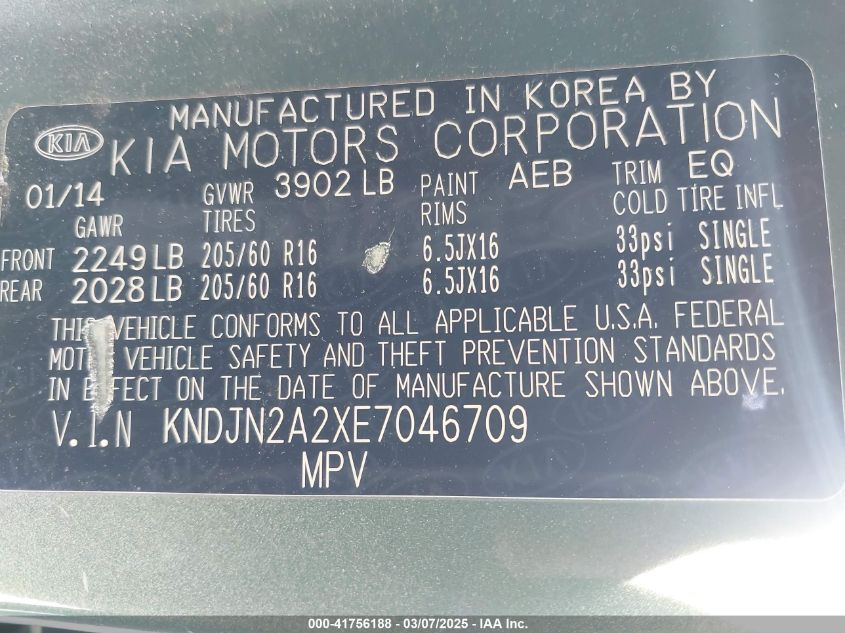Цвет ЗеленыйЦилиндры 4Привод Передний приводVIN KNDJN2A2XE7******Состояние НеизвестноПовреждения Передняя или задняя AutoRIA