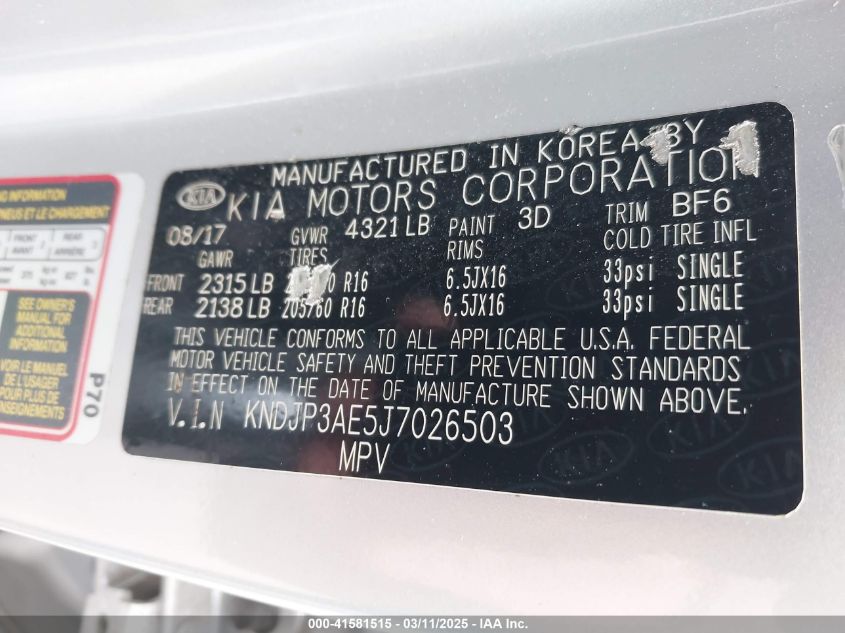 Цвет СеребряныйПривод Передний приводVIN KNDJP3AE5J7******Состояние НеизвестноПовреждения Передняя и задняя AutoRIA
