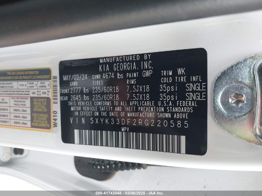 Цвет БелыйЦилиндры 4Привод Передний приводVIN 5XYK33DF2RG******Состояние НеизвестноПовреждения Передняя или задняя AutoRIA