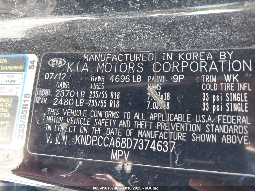 Цвет ЧерныйЦилиндры 4Привод Полный приводVIN KNDPCCA68D7******Состояние НеизвестноПовреждения Пожар двигателя AutoRIA