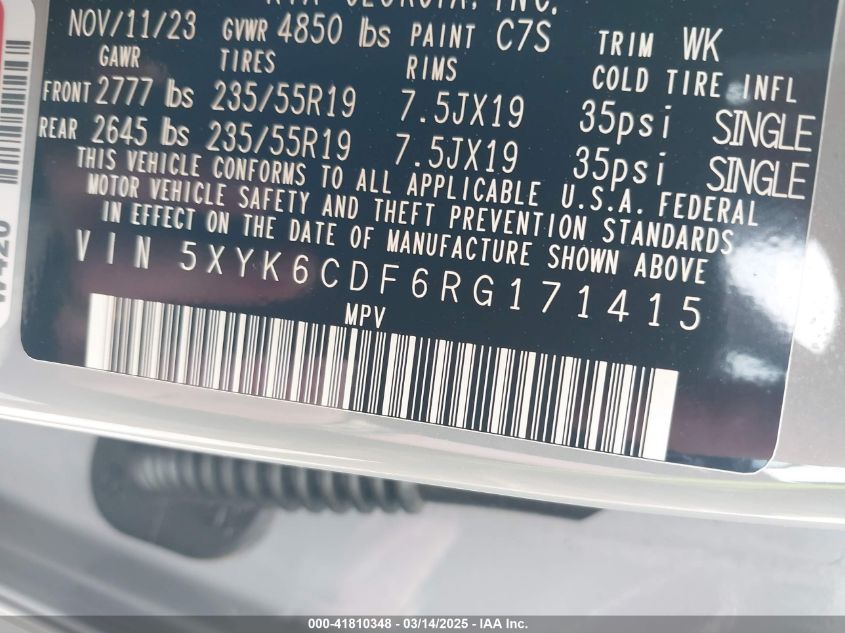 Цвет СерыйЦилиндры 4Привод Полный приводVIN 5XYK6CDF6RG******Состояние НеизвестноПовреждения Незначительные AutoRIA
