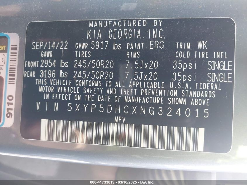 2022 KIA TELLURIDE 2022 року Бензин, 3.8, Полный привод, vin - 5XYP5DHCXNG****** из США