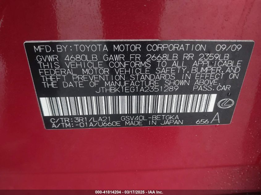 2010 LEXUS ES 350 2010 року Бензин, 3.5, Передний привод, vin - JTHBK1EG1A2****** из США