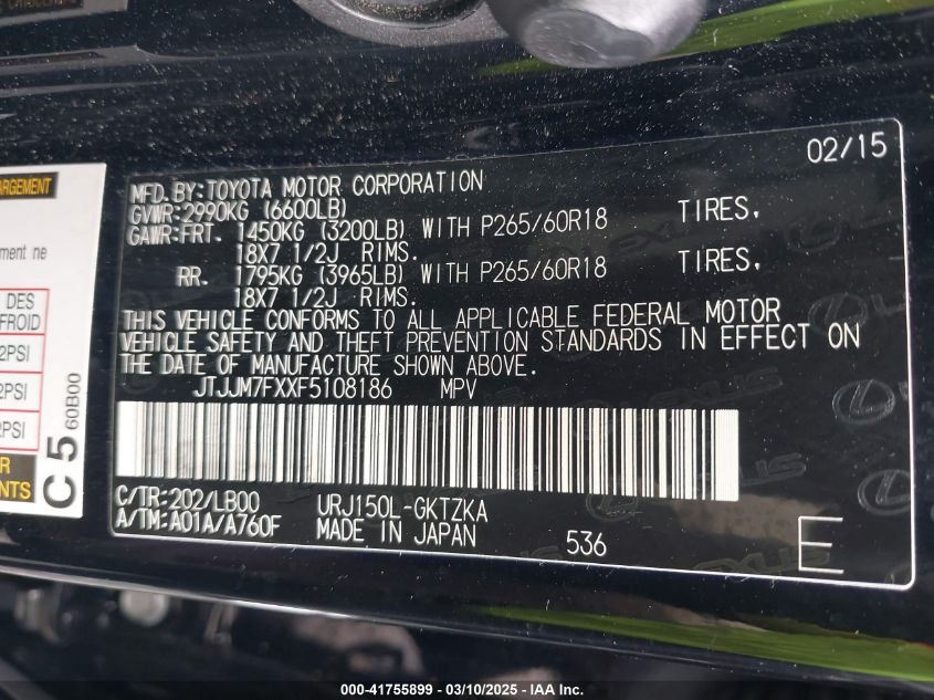 2015 LEXUS GX 460 2015 року Бензин, 4.6, Полный привод, vin - JTJJM7FXXF5****** из США