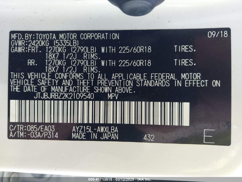 2019 LEXUS NX 300H 2019 року Гибрид, 2.5, Полный привод, vin - JTJBJRBZ2K2****** из США