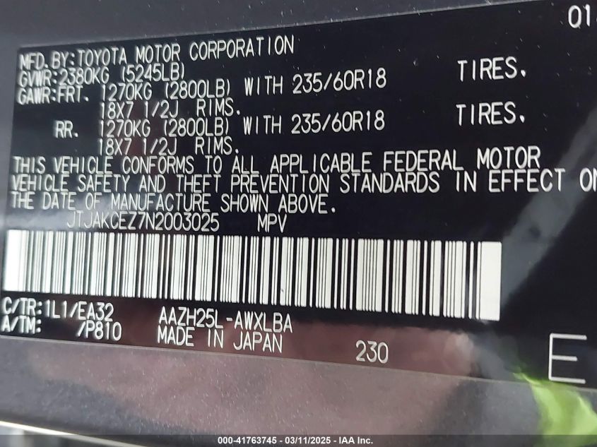 Цвет СерыйЦилиндры 4Привод Полный приводVIN JTJAKCEZ7N2******Состояние НеизвестноПовреждения Правая сторона AutoRIA