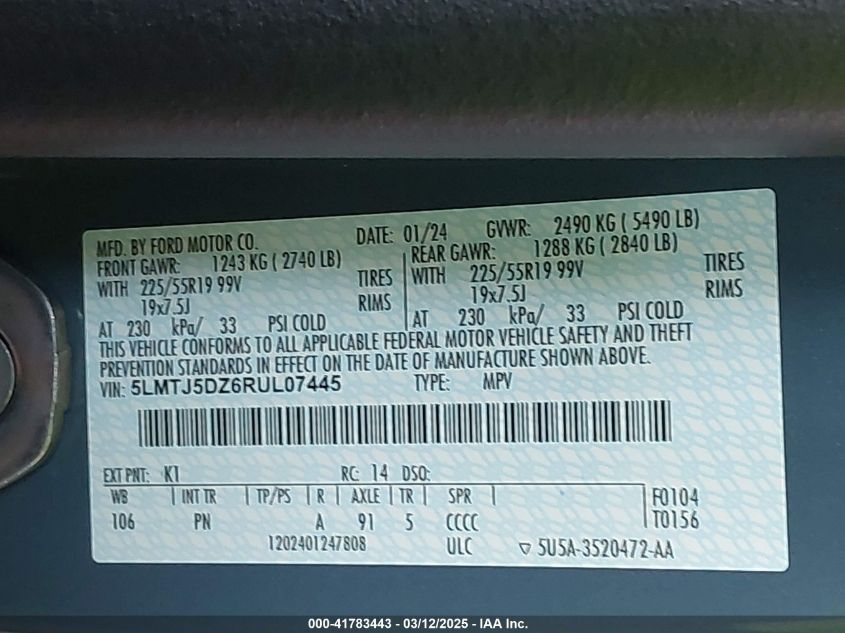 2024 LINCOLN CORSAIR 2024 року Гибрид, 2.5, Полный привод, vin - 5LMTJ5DZ6RU****** из США