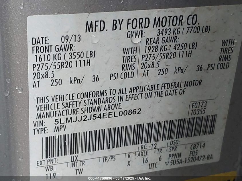 Цвет СеребряныйЦилиндры 8Привод Полный приводVIN 5LMJJ2J54EE******Состояние НеизвестноПовреждения Передняя или задняя AutoRIA