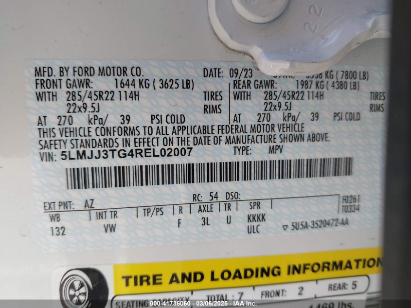 2024 LINCOLN NAVIGATOR 2024 року Бензин, 3.5, Полный привод, vin - 5LMJJ3TG4RE****** из США