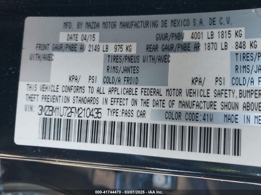Цвет ЧерныйЦилиндры 4Привод Передний приводVIN 3MZBM1U72FM******Состояние НеизвестноПовреждения Правая сторона AutoRIA