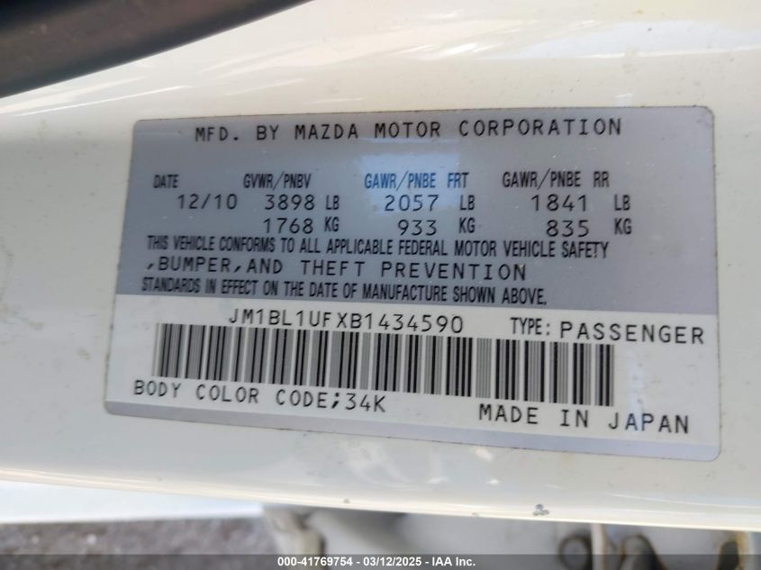 Цвет БелыйЦилиндры 4Привод Передний приводVIN JM1BL1UFXB1******Состояние НеизвестноПовреждения Передняя или задняя AutoRIA
