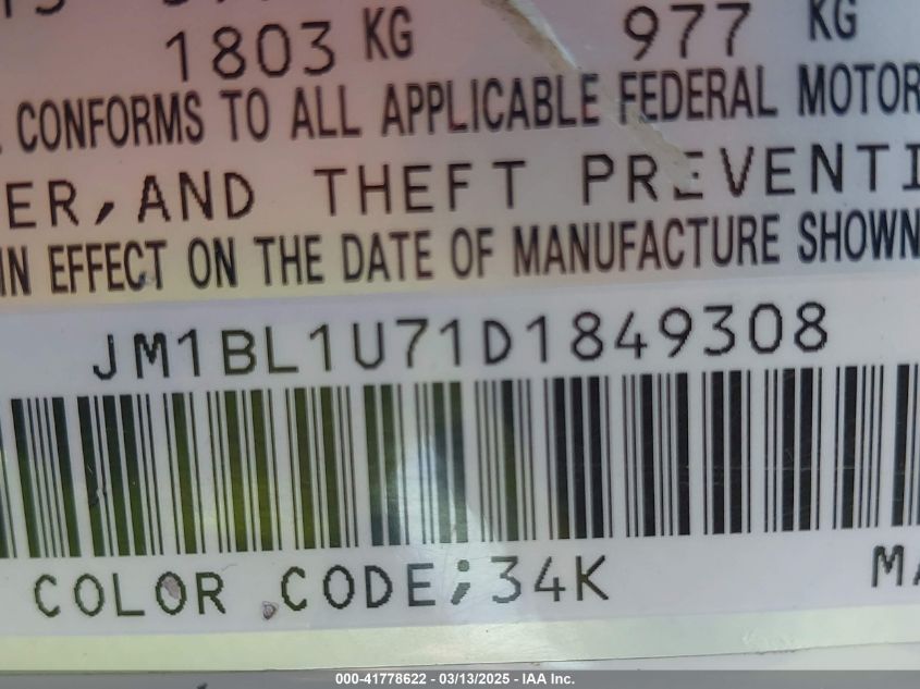 Цвет БелыйЦилиндры 4Привод Передний приводVIN JM1BL1U71D1******Состояние НеизвестноПовреждения Передняя или задняя AutoRIA