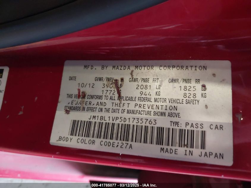 Цвет КрасныйЦилиндры 4Привод Передний приводVIN JM1BL1VP5D1******Состояние НеизвестноПовреждения Передняя или задняя AutoRIA