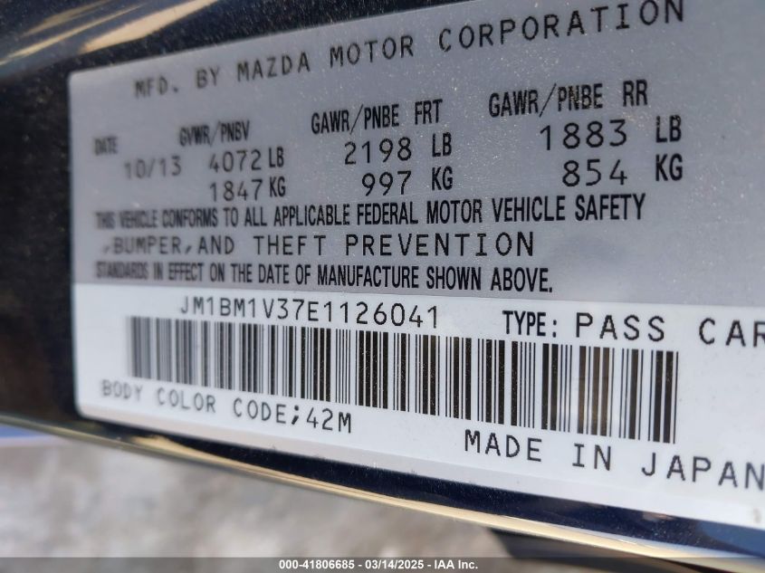 2014 MAZDA 3 2014 року Бензин, 2.5, Передний привод, vin - JM1BM1V37E1****** из США
