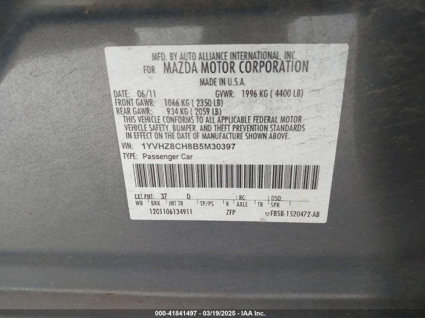 2011 MAZDA 6 2011 року Бензин, 2.5, Передний привод, vin - 1YVHZ8CH8B5****** из США