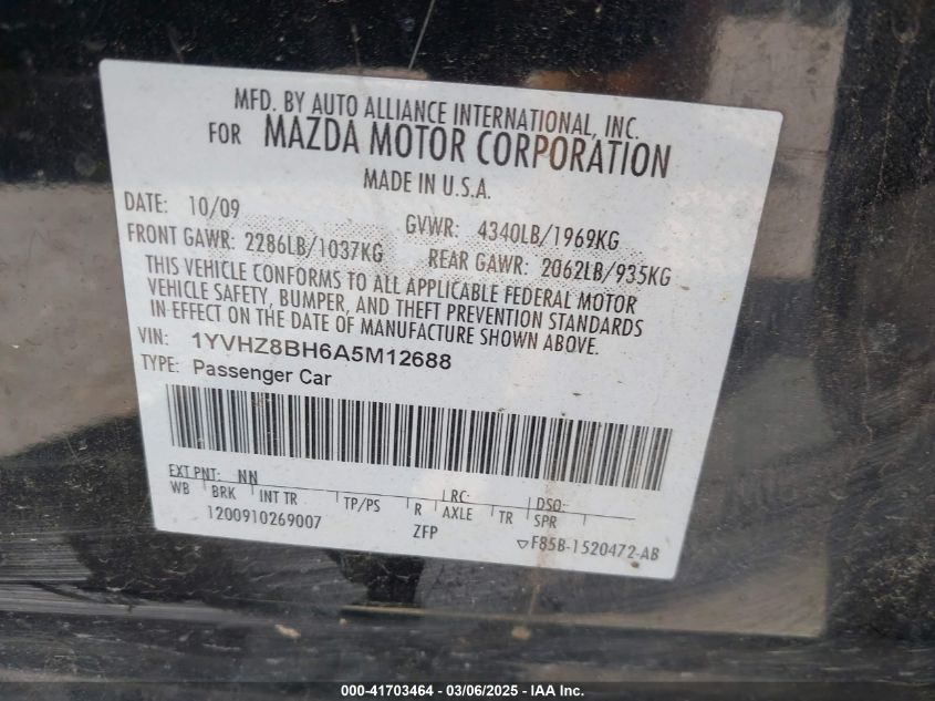 2010 MAZDA 6 2010 року Бензин, 2.5, Передний привод, vin - 1YVHZ8BH6A5****** из США