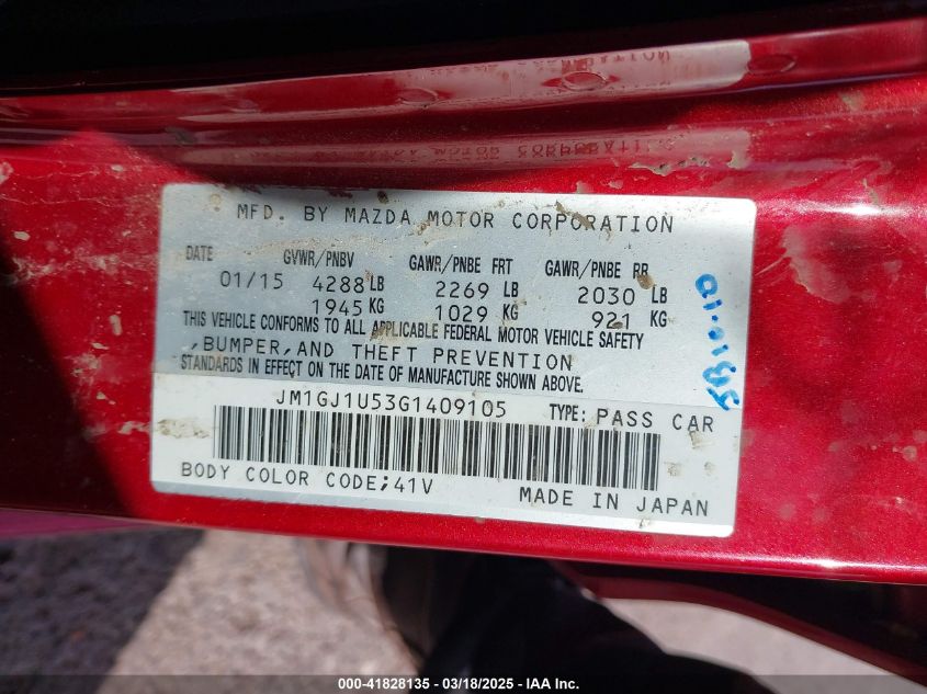2016 MAZDA 6 2016 року Бензин, 2.5, Передний привод, vin - JM1GJ1U53G1****** из США