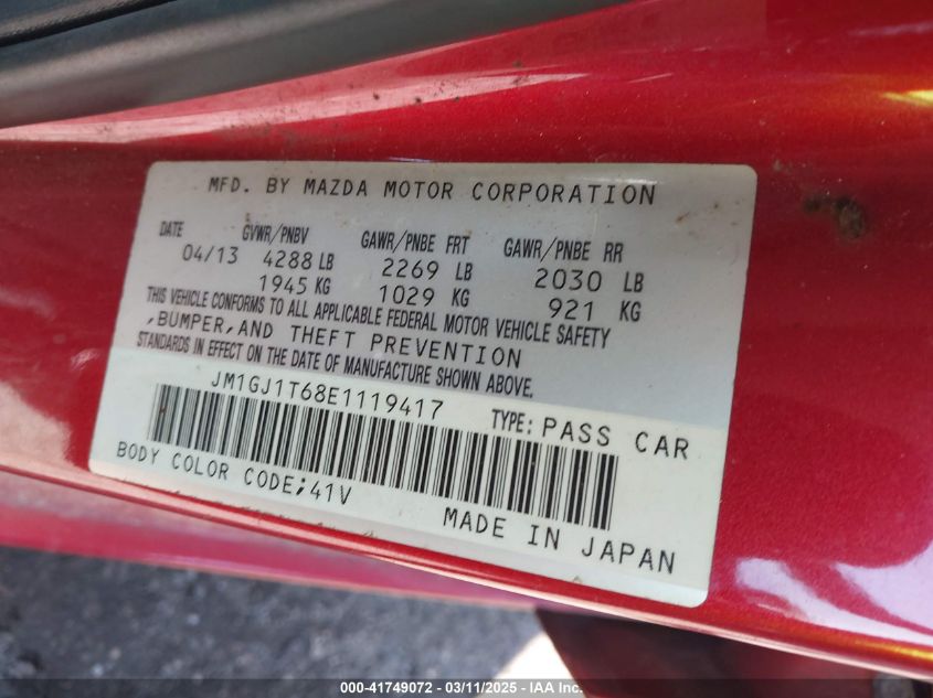 2014 MAZDA 6 2014 року Бензин, 2.5, Передний привод, vin - JM1GJ1T68E1****** из США