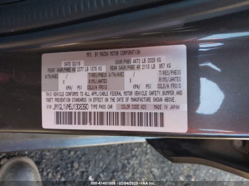 2018 MAZDA 6 2018 року Бензин, 2.5, Передний привод, vin - JM1GL1VM6J1****** из США