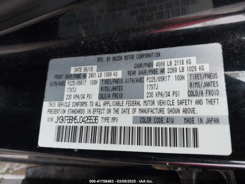 2018 MAZDA CX-5 2018 року Бензин, 2.5, Полный привод, vin - JM3KFBBM5J0****** из США