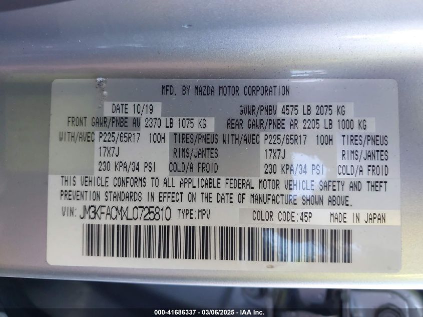 2020 MAZDA CX-5 2020 року Бензин, 2.5, Передний привод, vin - JM3KFACMXL0****** из США