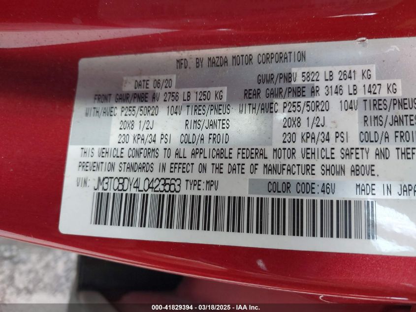 2020 MAZDA CX-9 2020 року Бензин, 2.5, Полный привод, vin - JM3TCBDY4L0****** из США