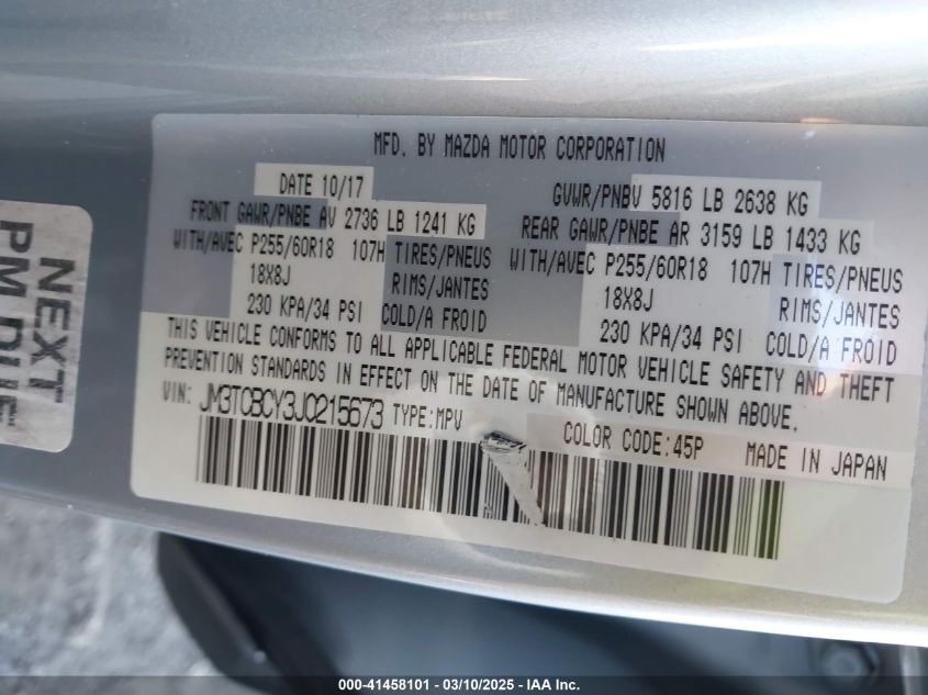 2018 MAZDA CX-9 2018 року Бензин, 2.5, Полный привод, vin - JM3TCBCY3J0****** из США