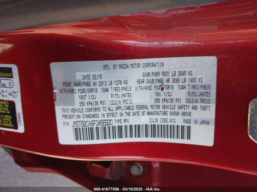 2015 MAZDA CX-9 2015 року Бензин, 3.7, Передний привод, vin - JM3TB2CA8F0****** из США