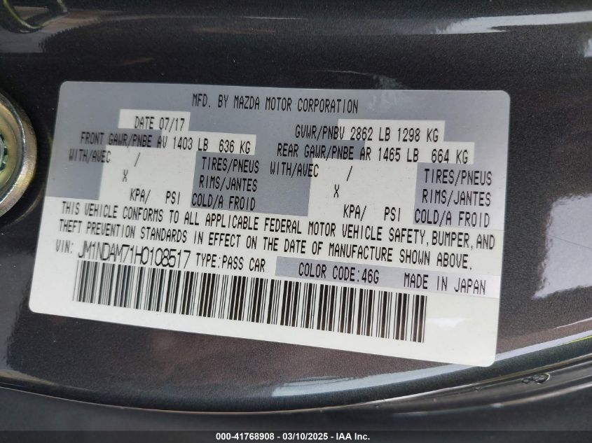 2017 MAZDA MX-5 2017 року Бензин, 2.0, Задний привод, vin - JM1NDAM71H0****** из США