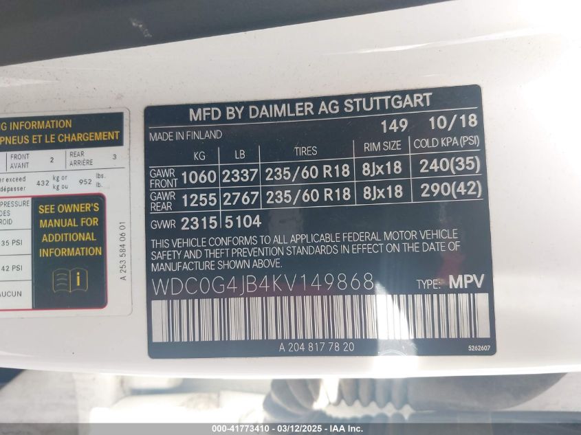 2019 MERCEDES-BENZ GLC-CLASS 2019 року Бензин, 2.0, Неизвестно, vin - WDC0G4JB4KV****** из США
