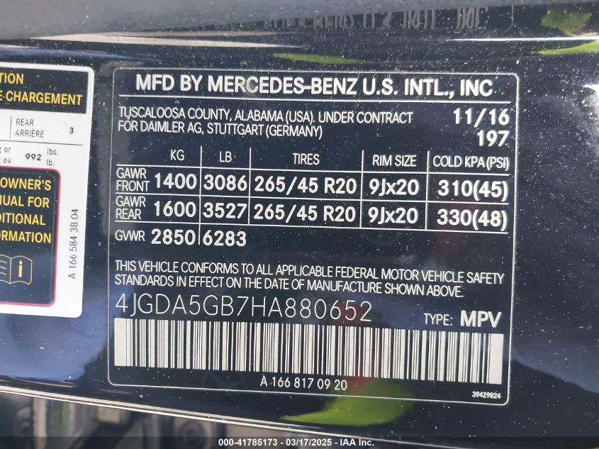 2017 MERCEDES-BENZ GLE-CLASS 2017 року Бензин, 3.0, Полный привод, vin - 4JGDA5GB7HA****** из США
