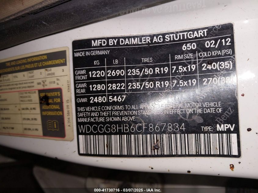 Цвет БелыйЦилиндры 6Привод Полный приводVIN WDCGG8HB6CF******Состояние НеизвестноПовреждения Правая сторонаДата аукциона 2025-03-20 AutoRIA