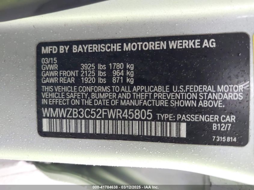 Цвет СеребряныйЦилиндры 4Привод Передний приводVIN WMWZB3C52FW******Состояние НеизвестноПовреждения НеизвестноДата аукциона 2025-03-26 AutoRIA