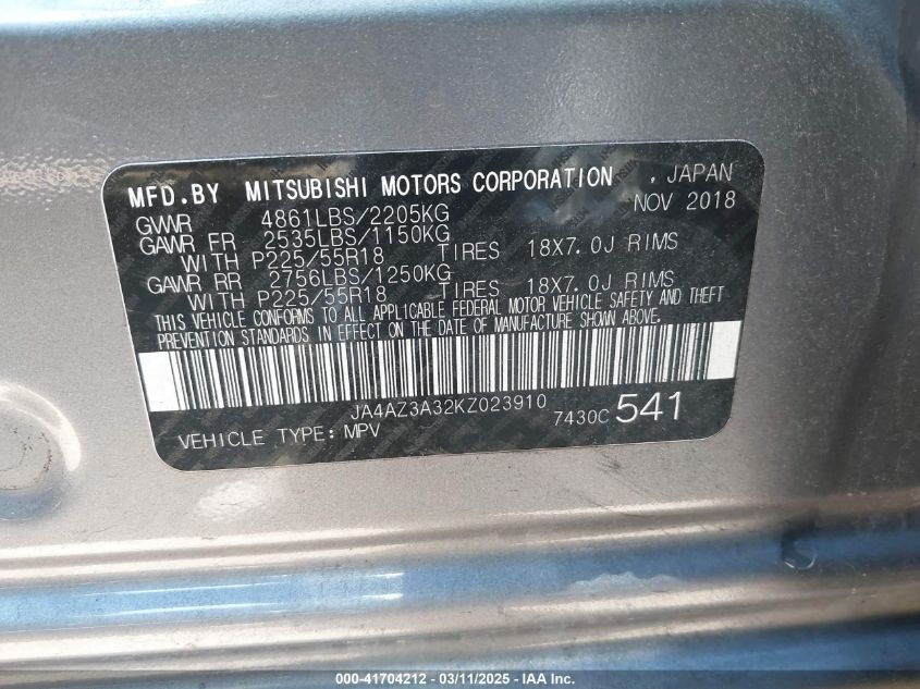 2019 MITSUBISHI OUTLANDER 2019 року Бензин, 2.4, Полный привод, vin - JA4AZ3A32KZ****** из США