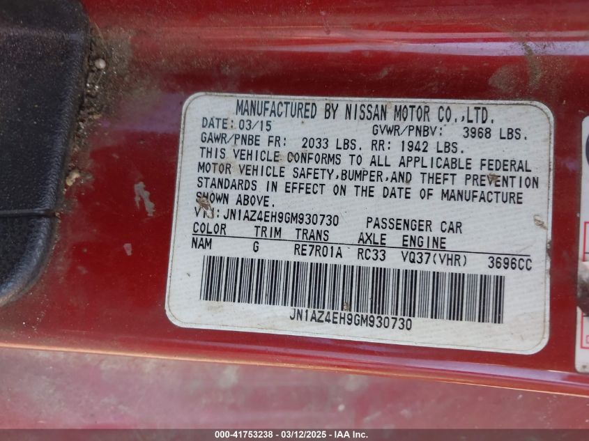 2016 NISSAN 370Z 2016 року Бензин, 3.7, Задний привод, vin - JN1AZ4EH9GM****** из США