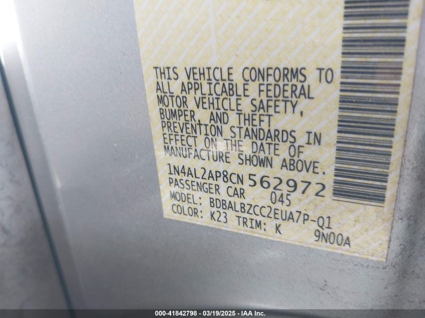 Цвет СеребряныйЦилиндры 4Привод Передний приводVIN 1N4AL2AP8CN******Состояние НеизвестноПовреждения Передняя или задняя AutoRIA